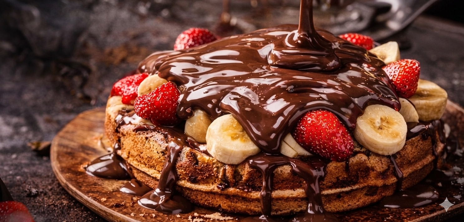 Fırından çıkan mis kokulu waffle’lar, özenle süslenip sunuma hazırlanıyor.